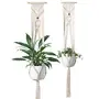 Set of 2 Macrame Plant Hangers without Planters Approximate Dimensions : Small sized plant Hanger - 35 Inches in length Medium sized plant Hanger - 40 inches in length Large Double tier hanger 50 inches in length Material : made with 3mm 100% macrame cord. NOTE : To be hanged in proper sustainable hooks that can hold your plants weight to maintain balance of the Planters Plants & Planters not included.