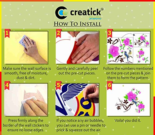 Ideal for family lounge bedroom cafe and restaurant kids room nursery room etc. PVC nontoxic and waterproof. These wall stickers decorate your home just in minutes. Easy installation the surface you wish to attach your decal must be clean and free from dust grease or any other contamination. Simply peel those precut pieces of wall stickers off from the backing paper and apply them to the desired area. Refer to the finished design shown in between the sheet and follow the numbers mentioned on the pieces to form the desired pattern. Freshly painted or lacquered surfaces must be allowed to completely cure for minimum 30 days before the decal is applied. After pasting the wall stickers on your wall press firmly along the border and remove air bubbles if any. Repeat if required. Do not apply on wet walls. It will be helpful and fun if you take help of your friends or family members.