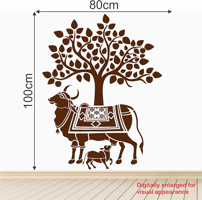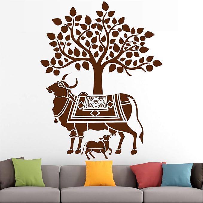 StickMe 'Kamdhenu Cow and Calf - Holy Cow - Hindu Religion - Sacred - God - Creative - Colorful Self-Adhesive Wall Sticker' -SM784 (Multi Colour, Vinyl - 100cms X 80 cms)