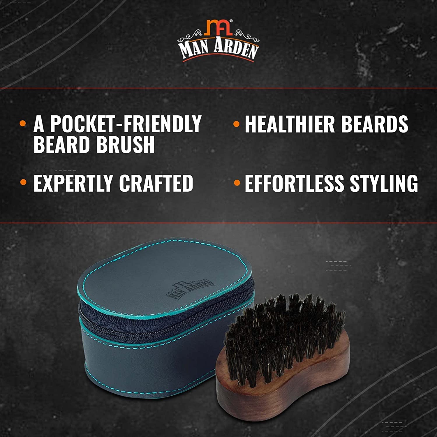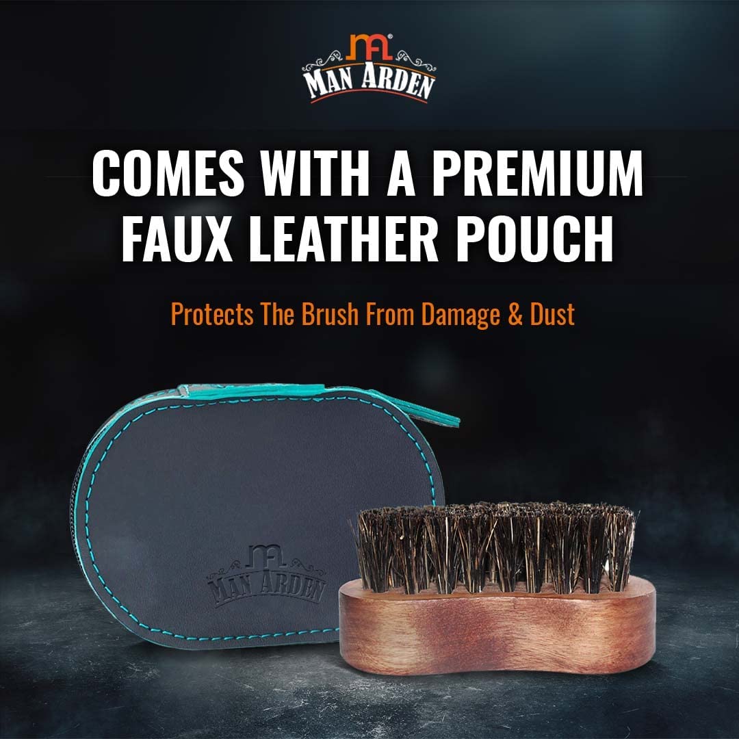 Man Arden 100% Boar Bristle Beard Brush with Hand Crafted Premium Wood Handle with Premium Faux Leather Pouch