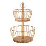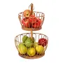 HomeHome ImprovementHousehold Supplies2 Tier Home and Kitchen Fruit Vegetable Baskets Metal and Wooden Multicolor Black/Gold/Rose Gold Size (16.5 Inches Height) (Gold)