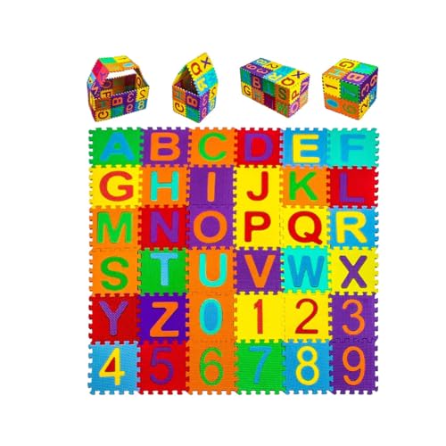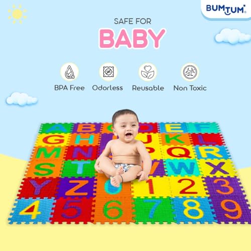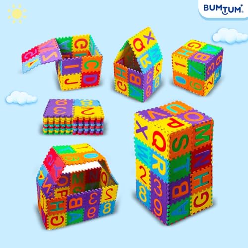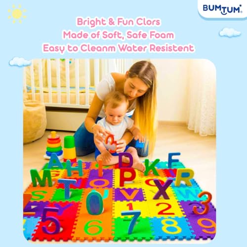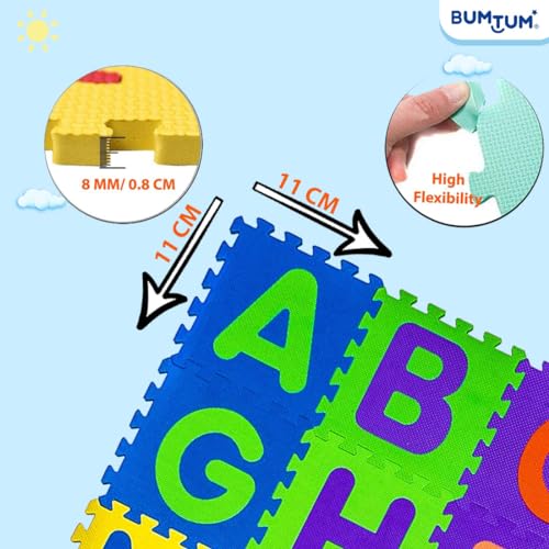 BUMTUM Baby Alphabet Interlocking Tiles Double Sided Water Proof Learning Floor Carpet Gym Mat for Crawling Babies/Infant/Toddler & Kids | 11X11 Cm (36 Tiles Multicolour)