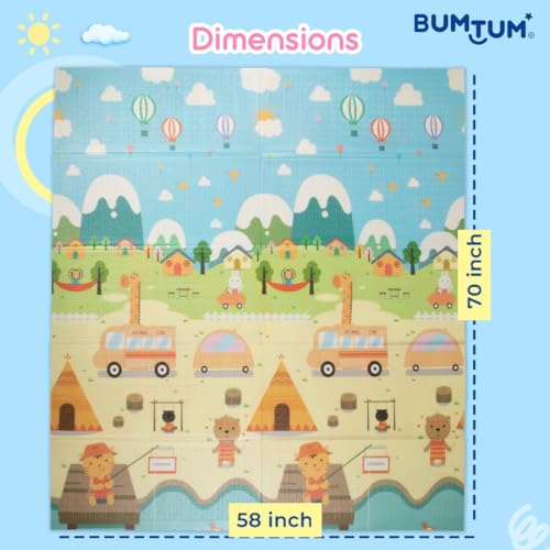 BUMTUM Baby Play Mat | Waterproof Portable Double Side Soft Reversible Non Toxic BPA Free Learning & Crawling Foldable Foam for Toddler, Infant & Kids (Light House)