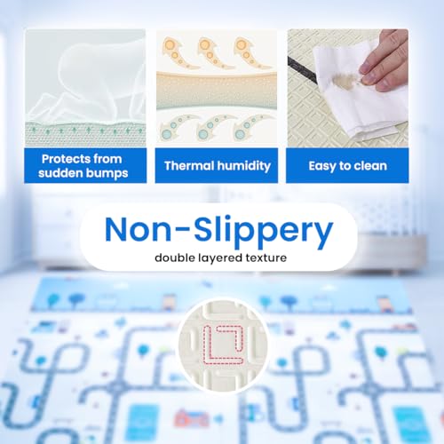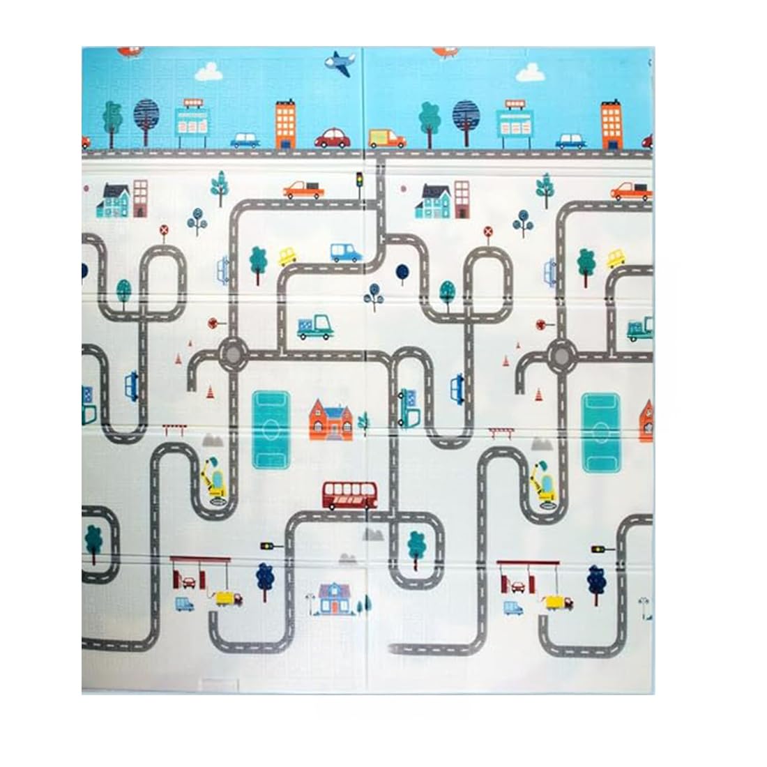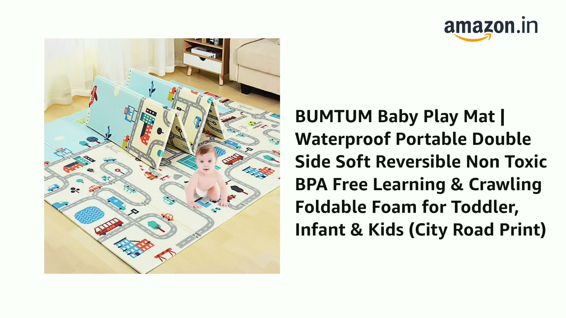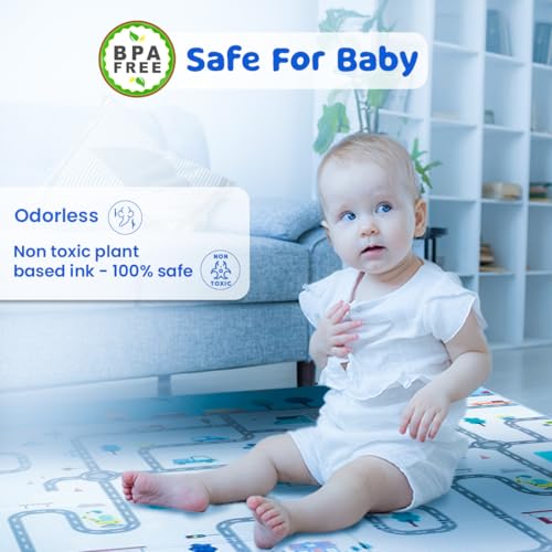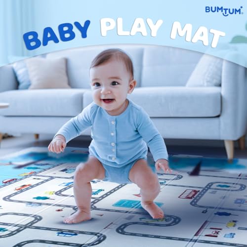 BUMTUM Baby Play Mat | Waterproof Portable Double Side Soft Reversible Non Toxic BPA Free Learning & Crawling Foldable Foam for Toddler, Infant & Kids (City Road Print)