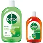 Dettol Liquid Disinfectant for Floor Cleaner Surface Disinfection Personal Hygiene (Lime Fresh 1L)Dettol Disinfectant Multipurpose Liquid cleaner provides protection to you and your family against illness causing germs. This disinfectant liquid sanitizes your home and also helps maintain your personal hygiene. It can be used in bath laundry floor and surface cleaning leaving everything clean and fresh. This multipurpose disinfenctant cleaner for home is recommended by Indian Medical Association. USAGE: Recommended dilutions to protect your family from germs: Bathing - 1 capful to a bucket of water (10 litres); Kitchen Slab - 1 capful to a litre of water; Shaving - 1 capful to a litre of water; Floor Cleaning - 1 capful to a litre of water; Laundry - 1 capful to a litre of water in the last rinse; Refrigerator - 1 capful to a litre of water. If swallowed seek immediate medical advise.Dettol Antiseptic Liquid for First Aid Surface Disinfection and Personal Hygiene 550mlDettol Antiseptic Liquid protects you and your family from 100 illness causing germs. It comes in a fresh pine fragrance. The topical antiseptic liquid sanitizes your home and helps maintain your personal hygiene. The Dettol first aid antiseptic liquid can be used to protect against infection from cuts and scratches disinfect toys and sanitize baby wear leaving everything clean and fresh. It can also be used as a household disinfectant and cleaner on surfaces or in laundry cleaning to kill germs. This liquid antiseptic is recommended by Indian Medical Association and can be kept in your emergency first aid kit. USAGE: Recommended dilutions to protect your family from germs: Bathing â 5ml to a bucket of water (10 litres); First Aid- 15ml to 300ml of water; Shaving Antiseptic Liquid- 15ml to 300ml of water; Nappy Wash â 12.5ml to 500ml of wate