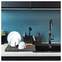 Sticks to sinks tiles etc. thanks to the suction cup. The scraper edge makes it easier to remove stubborn food debris.