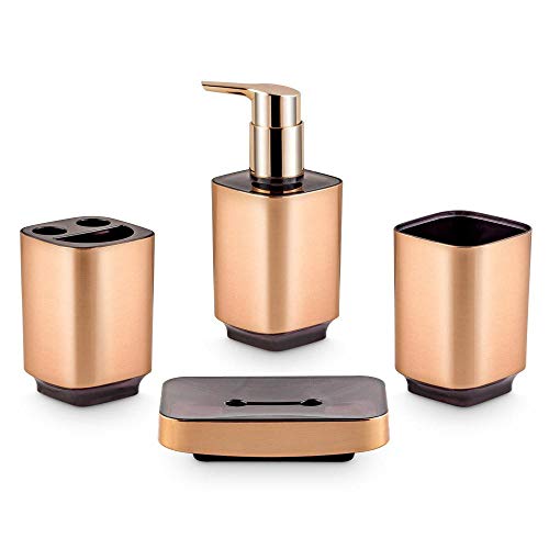 Freelance Windsor Polystyrene Bathroom Set-Dispenser, Toothbrush Holder, Tumbler & Soap Dish - Copper - 4 Pieces