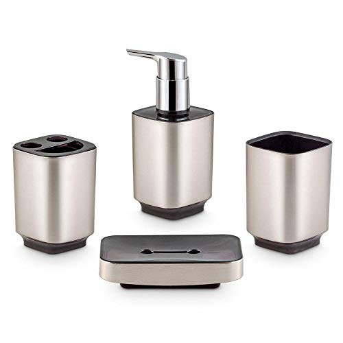 Freelance Windsor Polystyrene Bathroom Toothbrush Holder, Tumbler & Soap Dish Set-Dispenser (Silver) -4 Pieces
