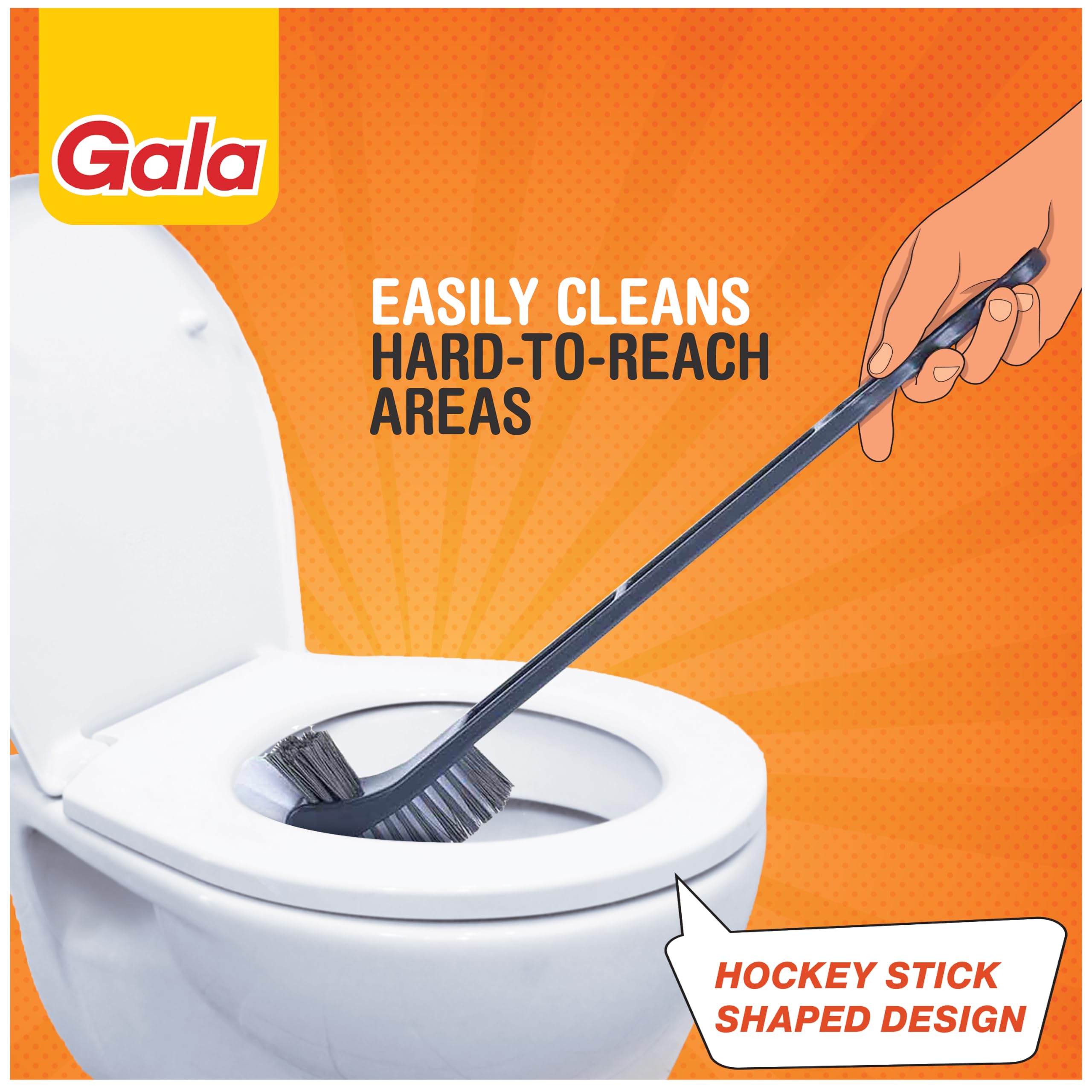 HomeHome ImprovementHousehold SuppliesGala Double Hockey Shape Toilet Cleaner Brush with Holder Stand, Toilet Cleaning Brush for Western and Indian Toilet, Bathroom Brush for Toilet Cleaning (Gray,Pack of 1)