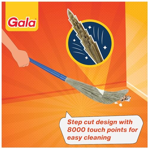 The specialty No Dust Floor Broom allows you to clean with absolute perfection leaving no crumb dust or dirt in your house behind / The next generation of cleaning with original traditional design The ultimate sweeper! Intended for indoor or outdoor use to catch particles on your kitchen tile wooden or laminate floors - or outside sweeping leaves in your garage yard patio or garden Sturdy design is heavy duty / Firm-grip handle offers a wide range of mobility for manual use allows you to reach any spot inside on a hardwood floor or under a rug or piece of furniture effortlessly Synthetically engineered bristles designed to catch pet hair / Combining the best of old and new with a plastic upright lightweight handle and wide natural-looking stiff fiber angled brush head Items delivered: 1x Gala No Dust Floor Broom / 90cm / Colour: Blue and Light Brown