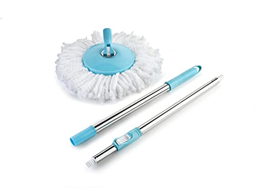 Ganesh 360° spin cleaning mop stainless adjustable steel rod handle stick with refill provides easy & quick cleaning options to dirt and dust at your home offices hotels etc. It reaches under furniture hard to reach places and remote access places; This set comes with two micro fiber cloth which is non-abrasive and super absorbent fibers which absorb darts and water making it easy to clean;It has extendable mop handle which lets you adjust the height of your mop according to your requirement. The mop handle comes with handle lock system which locks the height of handle securely in place.