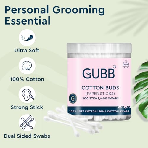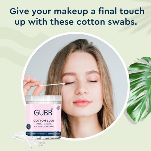 GUBB Cotton Buds in Paper Stick - Pack of 200: Introducing the GUBB Cotton Buds with Paper Sticks a sustainable and eco-friendly solution for your daily beauty and hygiene needs. This pack includes 100 cotton buds with paper sticks providing a gentle and
