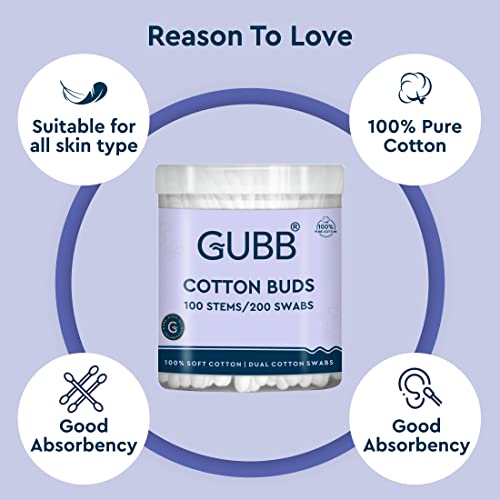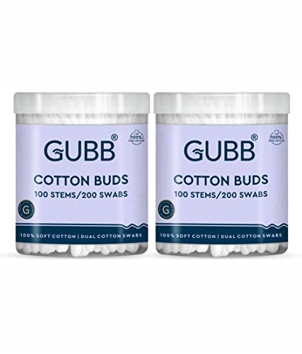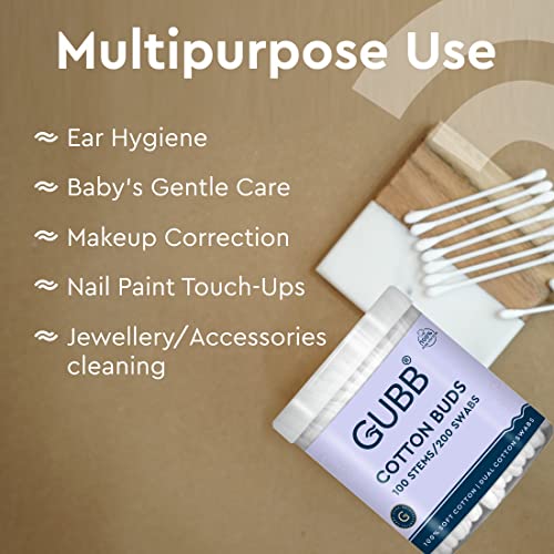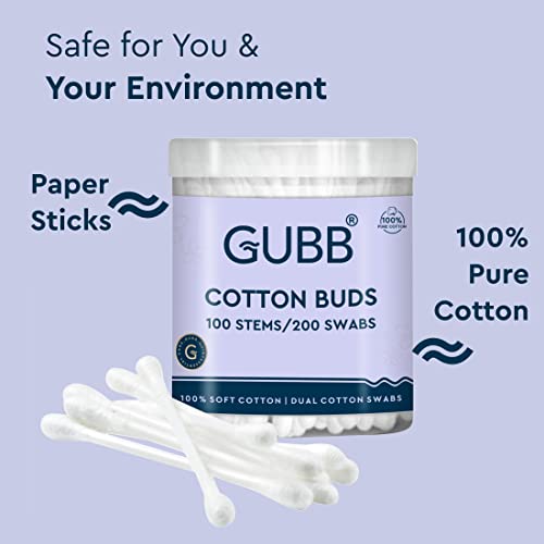 GUBB Paper Stick Cleaning Cotton Ear Buds Swabs for with Safety Tip 100 Sticks (Pack of 2)