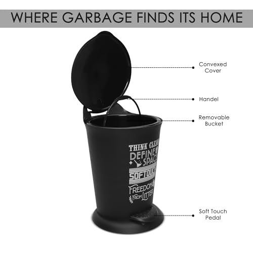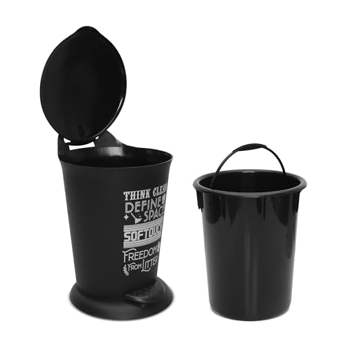 HomeHome ImprovementHousehold SuppliesJAYPEE BITS BIN Pedal Bin with Plastic Bucket And Lid | Garbage Bin Trash Can Pedal Waste Bin |Round Shape Dustbin For Home, Kitchen, Bathroom, Office, 4 Litre, Black