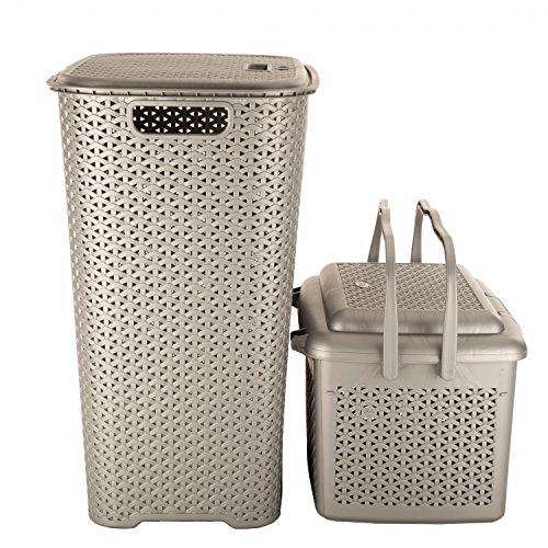 Jaypee plus combo- drop all laundry basket carry all xl- multiutility basket with handle together are one solution to keep things organise. Drop all is the perfect solution to organize your dirty clothes at a single place and for convenience in doing laundry. The laundry basket is made of tough plastic that keeps it durable for a long period of time. The laundry basket comes with a lid for hassle free and neat storage. Carry all xl multiutility basket with handle is a multi-purpose basket can be utilized for any kind of work (to store/to carry) all baskets is made with modular knit design which adds a touch of style to one's home. Stylish and trendy look durable as made up of high quality plastic this will last for longer. Simple and elegant- you can simply keep it on any flat surface.