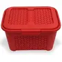 Karma Basket is a Multiutility basket comes with lockable lid handle & horizontal removable tray inside the basket to keep stuff seprated can be used for going temple with all pooja stuff together tool kit carry items on journey new born babies item kit Ideal usage is for storing & carrying items like Tools Art and Craft Stationery Medicines Cosmetic new born babies items kitchen aids and other stuffs. Stored Items remains Dust free with the help of closing lid & knit design provides ventilation to prevent bad odour. Has handle feature which makes it convenient to hold & carry items also comes with one sided lock to make the items secure while carrying them.