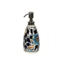 KHURJA POTTERY Ceramic Bathroom Accessories Set of 3 Modern Bath Set with Liquid handwash Soap Dispenser and Toothbrush Holder Accessory for Home (Bathroom Set Flower Design Blue)