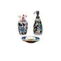 HomeHome ImprovementHousehold SuppliesKHURJA POTTERY Ceramic Bathroom Accessories Set of 3 Modern Bath Set with Liquid handwash Soap Dispenser and Toothbrush Holder Accessory for Home (Bathroom Set Flower Design Blue)