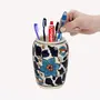 KHURJA POTTERY Handmade Bathroom Accessories Ceramic Toothbrush Holder Tooth Paste Holder Stand Home Office Doctors Cabin Decor Hospital Dcor Music Institute Kitchen Decor Blue with Flower Design