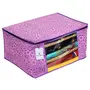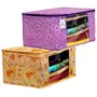 Material: Non Woven Color: Pink Purple & Ivory Red. Design- Metalic Printed .Package Contents: 2 Piece Saree Cover .Size: 43 cm x 35 cm x 22 cm .Made from durable wear and tear-resistant non-woven fabric. Lightweight and flexible saree covers .Carefully stitched to offer additional strength. Ideal for storing sarees and protecting them from dust and insects .Transparent see-through window for easy identification of contents. Durable zipper for easy opening and closing.