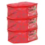 Kuber Industries Metallic Flower 3 Pieces Non Woven Blouse Cover Set (Red) - CTKTC23178