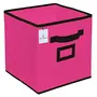 Material: Non woven Color: Pink Package Contents: Small Foldable Storage Organiser Cubes/Boxes Size: 27 cm x 27 cm x 27 cm Made from durable wear and tear-resistant fabric Meticulously stitched for added strength Enclosed box storage for neat and organised look Prevents contact of stored items with dust dirt etc. Sturdy structure stays upright even when empty Foldable lightweight and easy-to-store design