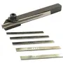 Mini Parting Holder - 8mm Shank with 6Pcs HSS Parting Blades Parting Blade Size : 1.45x5x63mm IDEAL FOR MINI SMALL LATHE RIDGED CLAMPING IS ASSURED BLADE HSS GRADE COMPLETE WITH ALAN KEY TO LOCK