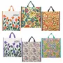 Multicolour Canvas Shopping Bag with Double Handle, Cloth Grocery Tote Bags, Reusable Shopping Grocery Bags,Foldable and Eco Friendly Washable Medium (Set of 6) (Dd-0101)