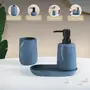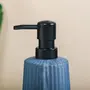 HomeHome ImprovementHousehold SuppliesNestasia Bathroom Accessories Set of 3 Ribbed Ceramic Handwash Dispenser with Toothbrush Holder and Tray Blueish-Grey