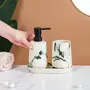 HomeHome ImprovementHousehold SuppliesNestasia Bathroom Accessories Set of 3 Ribbed Ceramic Handwash Dispenser with Toothbrush Holder and Tray Off-White & Green Marble Pattern