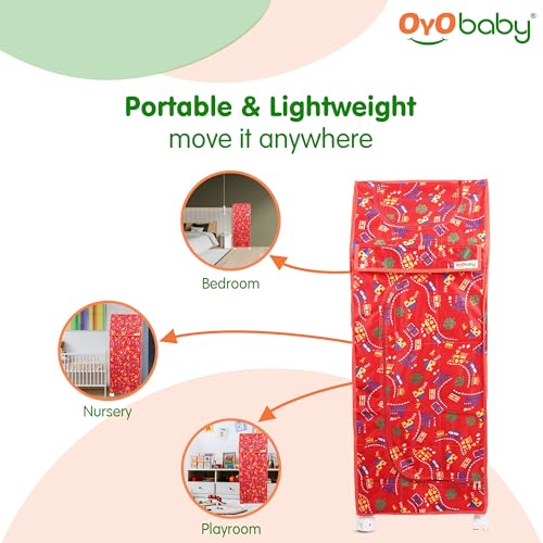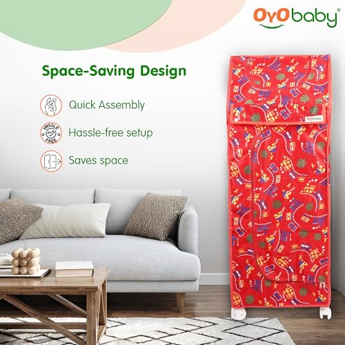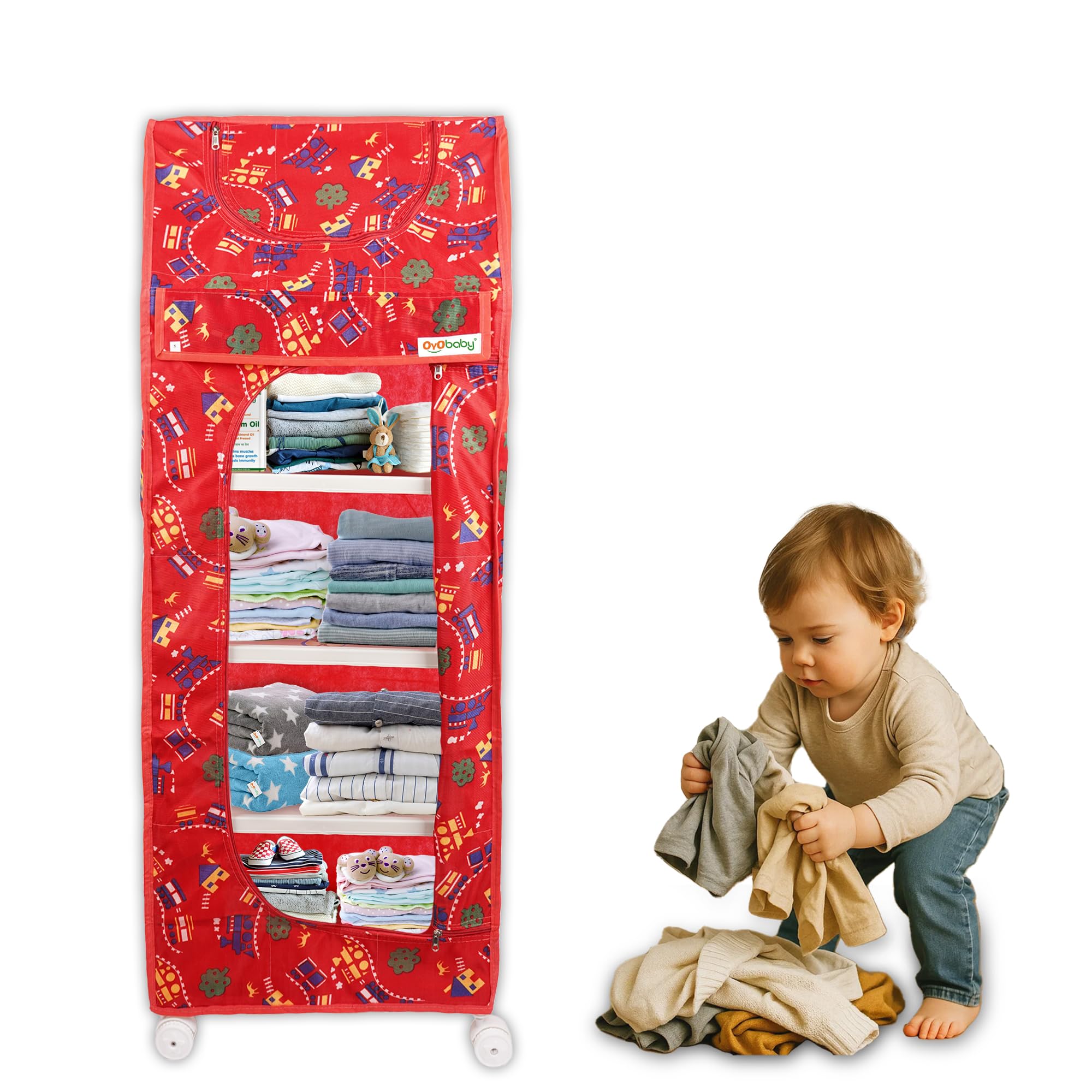 OYO BABY Baby Almirah | Baby Wardrobe Plastic Multipurpose with 5 Shelves | Foldable & Unbreakable Almirah Cupboard |Rack for Clothing - Cartoon Printed - Red