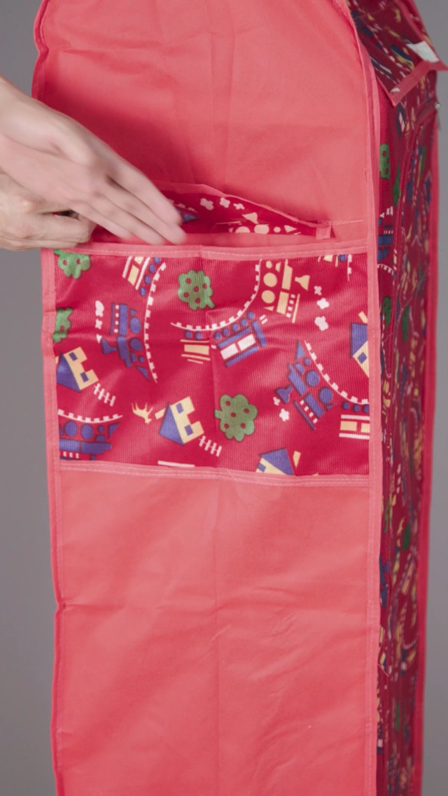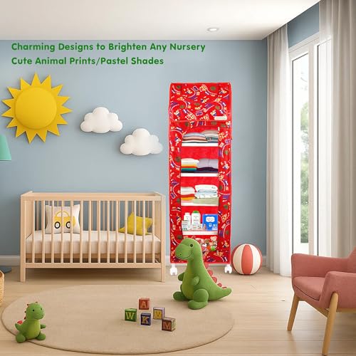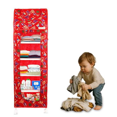 OYO BABY New Baby Multipurpose 6 Shelves Durable Foldable Almirah | Unbreakable Material | Cartoon Printed Cover (RED) Wardrobe/Cupboard
