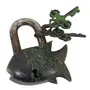 The Functional Brass Black Fish Padlock 3.5" with Two Keys Made from Solid Brass This functional Padlock has the shape of Fish This beautiful of an ancient Tibet Padlock is 3.5 inch high and 1.75 inch wide and weighs 298 Grams The back of the lock has traditional Tibetan Buddhist Mantra is sculptured . The Lock is sturdy and functional and comes with a set of 2 keys. This is Not the Vintage or Antique Product. Please Look The Image before you Purchase. The Item is 100% same as per our Images. We have made the rusty to the Lock with Chemical for the Vintage Look. But This is not Vintage Item . This is Functional and You have to Drop a little bid Oil for Function Freely .