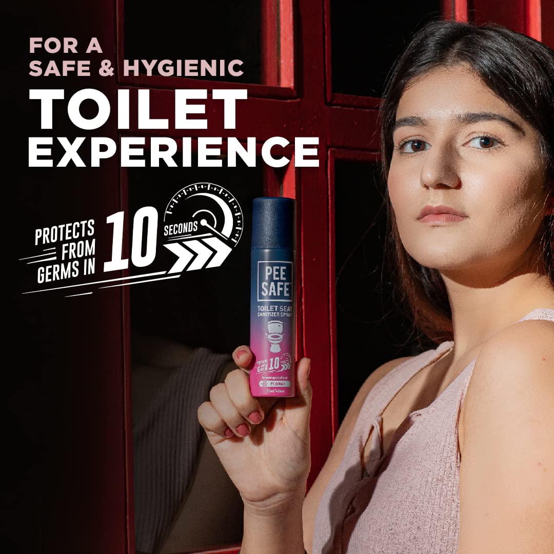 Pee Safe Toilet Seat Sanitizer Spray protects you from germs found in public toilets and s your of contracting infections like UTI. The spray kills 99.9% of germs that are present on the toilet seat's surface. All you've got to spray it from a distance of 25cms and wait for 10 seconds for the spray to work its charm and evaporate.