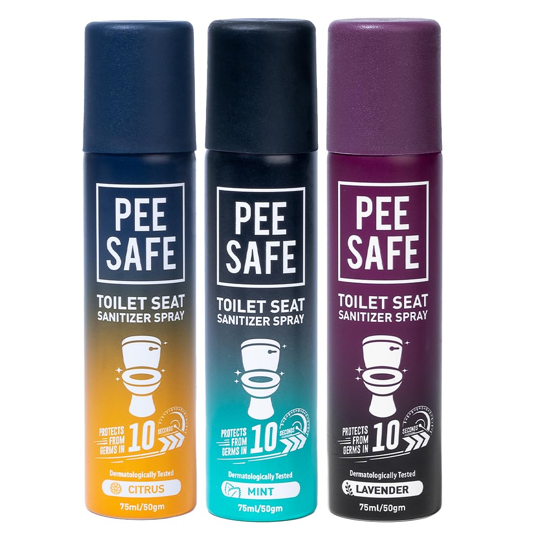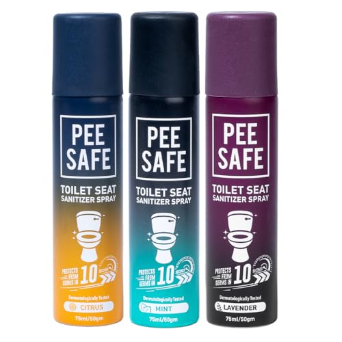 Pee Safe Toilet Seat Sanitizer Spray 75 ml (Mint, Lavender, Citrus, Pack of 3) | Reduces The Risk Of UTI & Other Infections | Protects From 99.9% Germs In 10 Seconds & Travel Friendly | Anti Odour
