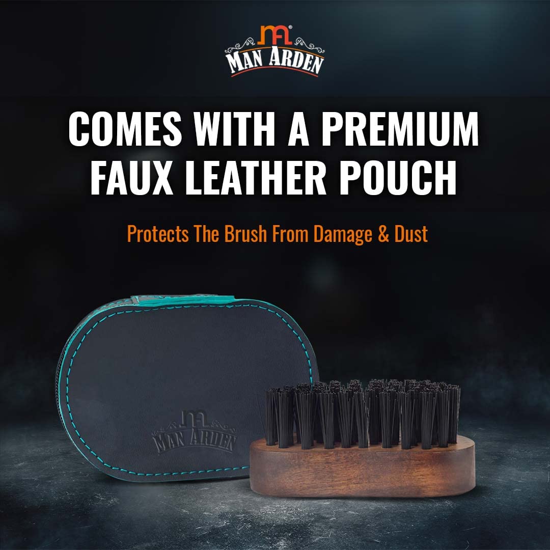 Man Arden Pocket Size Beard Brush with Hand Crafted Premium Wood Handle with Premium Faux Leather Pouch