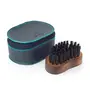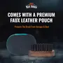 Pocket Size Beard Brush with Hand Crafted Premium Wood Handle with Premium Faux Leather Pouch