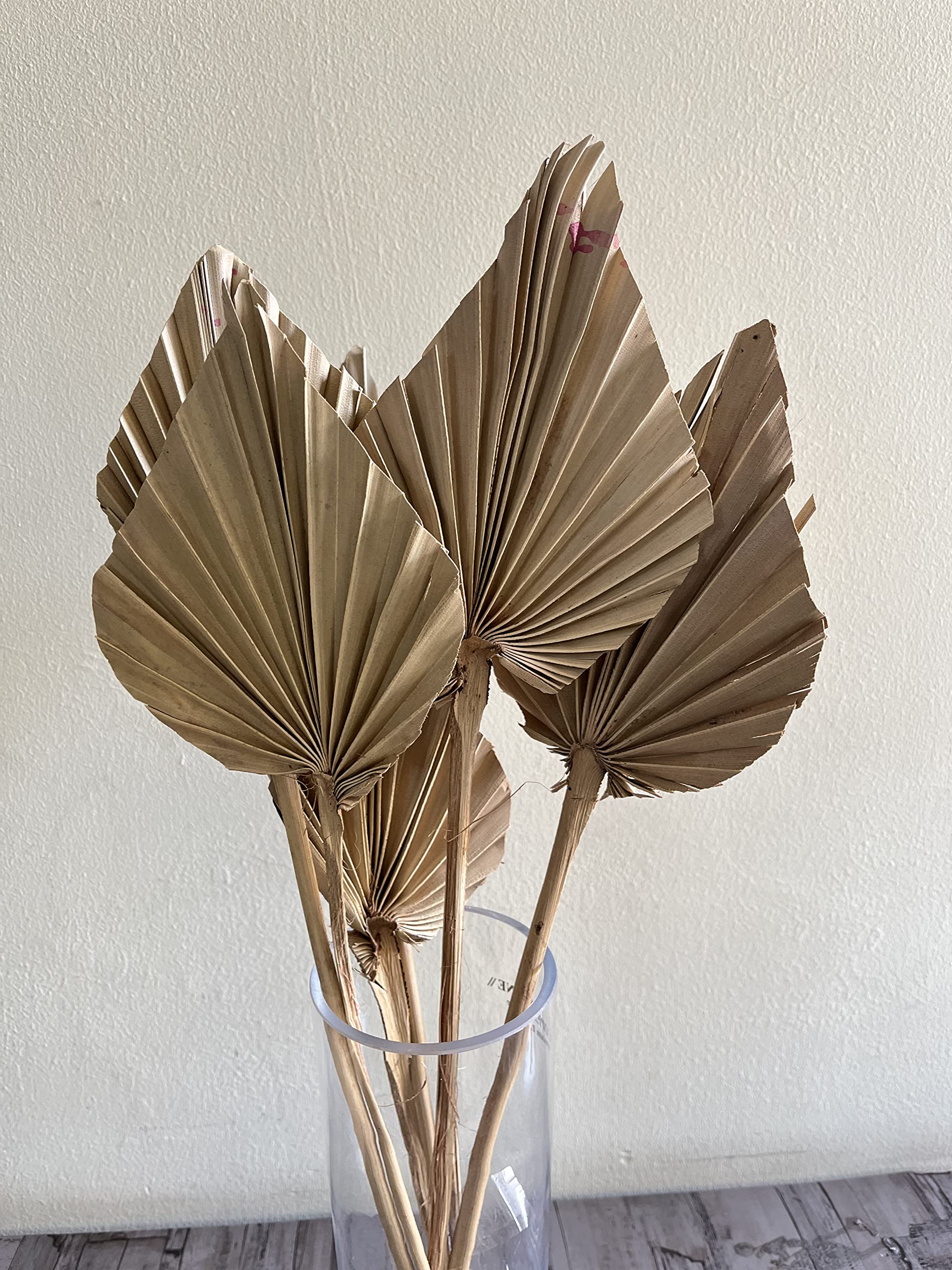 Palm Spear's architectural shape makes them very attractive. The Plam spears are handmade from dried and preserved Palm branches and are a great way to add a statement style to your home that will never go out of style. This natural beauty is loved for its versatility ease of use and maintenance. Add these bright coloured Palm spears to your dried arrangements and make them stand out. Each pack includes 6 of these long-lasting Plam spears and each Palm spear slightly varies due to the botanical's natural nature.