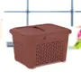 Trueware Camellia Basket comes with 1 Basket with Lock lid Handle and 1 Removable Tray. It comes with latch cover handle and horizontal removable tray inside the basket that is you can store anything and everything in it. Quality plastic material makes them very lightweight and appealing. These baskets are comes with a secure lid for protecting your articles from dust and has cut out handle feature which makes it convenient to hold.