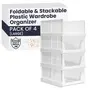 HomeHome ImprovementHousehold SuppliesWardrobe Organizer For Clothes Foldable & Stackable Almirah/Cupboard Organizer for Clothes Multi Purpose Plastic Shelf Clothes Organiser for Wardrobe (Pack of 4 (Large))