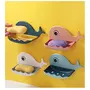 Wolpin Soap Case for Bathroom Kitchen (Set of 4 Pcs) Kids Self-Adhesive Sticker Soap Dish Holder Water Drain Plastic Fish Design