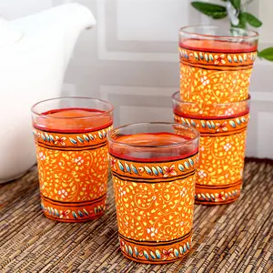 Hand Painted Tea Glass Set Of 4