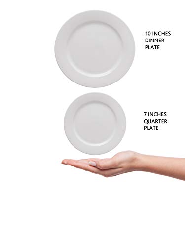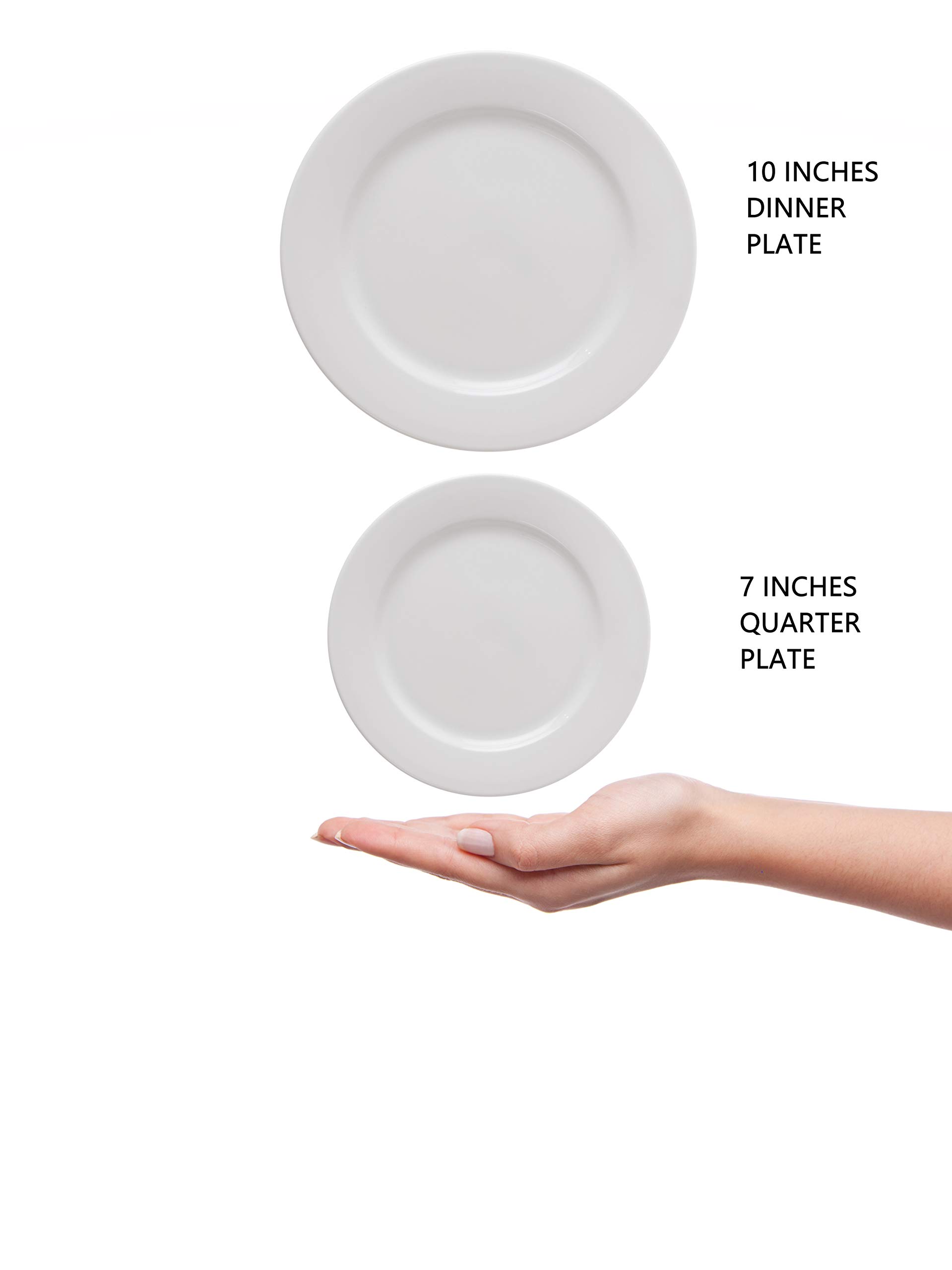 Package contents: 4-pieces dinner plates (17.78 cm) Ideal for use in the kitchen restaurants anywhere else and commercial purposes. Catering to your contemporary tastes this finely done bone china handi makes for an ideal addition to your kitchen.