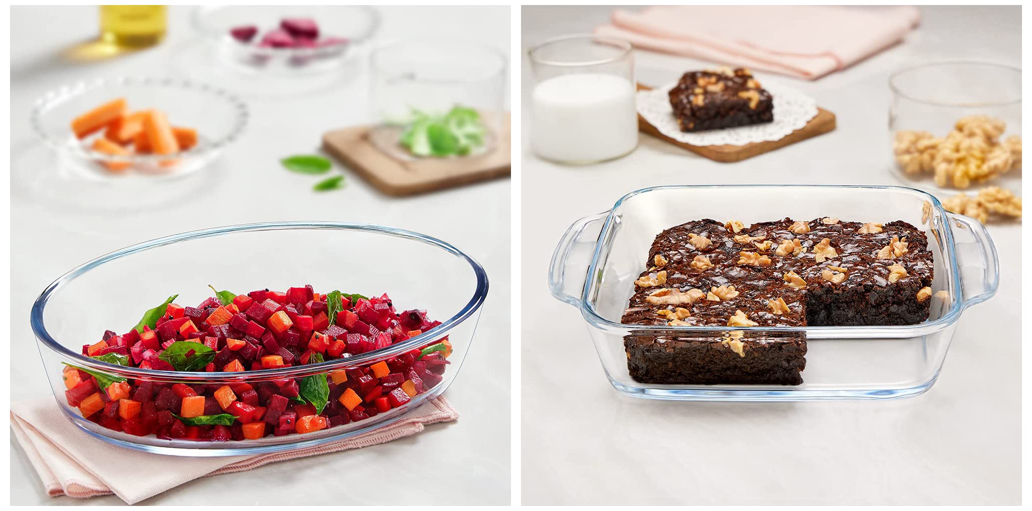 Borosil - Icy22Od0116 Oval Baking Dish, 1.6 Litres, Transparent & Borosil Square Dish With Handle, 800Ml