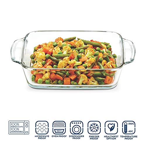 Borosil Icy22Od0116 Oval Baking Dish 1.6 Litres Transparent & Square Dish With Handle 800Ml