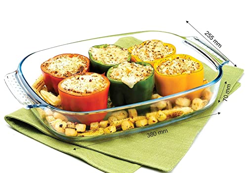 Bake 'N' Serve Deep Dish Rectangle with Handle Bakeware Safe and Oven Safe Glass 3800ml Set of 1 Clear