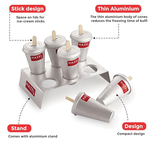 HAZEL Aluminium Kulfi Mould Set of 6 & 12 Ice cream Sticks | Reusable Ice Cream & Popsicle Maker | DIY Kulfi Molds for Homemade Frozen Treats, Ice Pops & Desserts