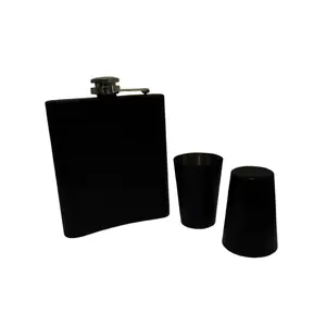 Dynore Black Hip Flask 7 oz with 2...