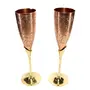 Start your celebration with this distinctive elegant flute handcrafted from hammered metal-plated brass and Copper coated. The flute is made by brass workers in Moradabad India. The cost of metals has skyrocketed in recent years which has had a devastating effect on the local economy and on the lives of individual artisans. Set of two Copper Plated and Brass Tall Champagne Flute Glasses. These Beautiful and Sturdy Flutes are 9.5" Tall and have a 2" Rim and 2 3/4" Base. The Copper Plated Cups have a 120 ml/ 4 Ounce Capacity.
