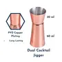 This copper Colorcocktail shaker and peg measures makes a stunning ition to any bar. An essential bartending tool that includes a built-in strainer and measured cap for high precision stainless steel with copper plating and a repeating divot texture this bar tool's glimmering appearance enhances its elegance The 750ML. capacity is perfect for a couple Manhattans margaritas or your cocktail recipes this stunning shaker to any cocktail lover home mixologist amateur bartender and more. Combine with a bottle of tequila rum gin vodka or whiskey for the perfect present for any party Product Dimension-Cocktail Shaker- 9x9x17 cm Peg Measure- 4.5x4.5x9.5 cm Capacity-Cocktail Shaker- 750 ml Peg Measure- 30/60 ml